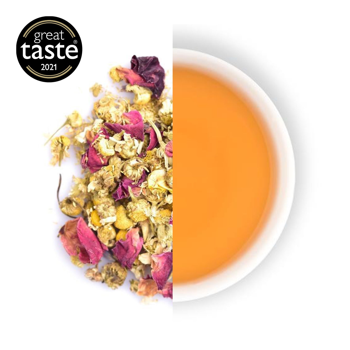 A delicate floral herbal infusion with gentle notes of crisp apple and honey-like sweetness.