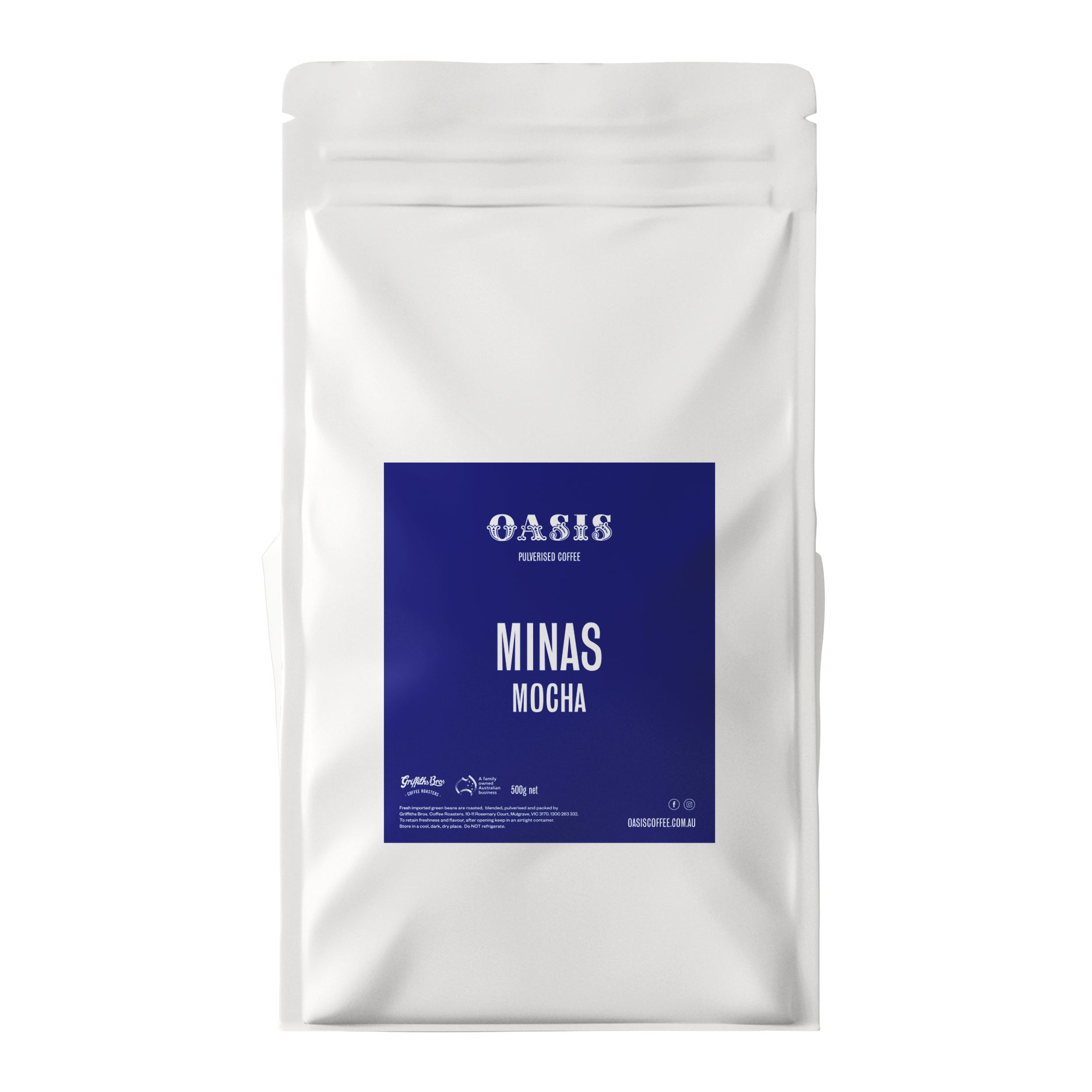 A medium to dark roasted pulverised coffee, enjoy OASIS' rich Minas Mocha blend with cocoa, roasted nuts and earthy tasting notes.